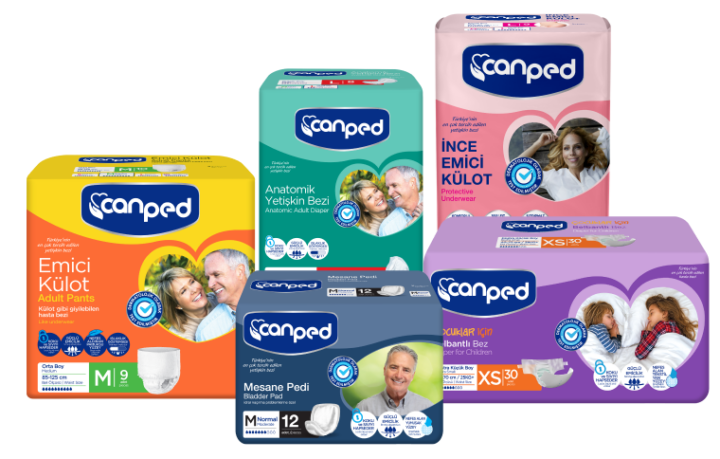 İdrar kaçırma sorunu yaşayanlara yönelik ürünlerden oluşan eksiksiz bir ürün yelpazesi sunan Canped, geniş ürün portföyü ile yetişkinlerden çocuklara kadar her yaşa hitap etmektedir.